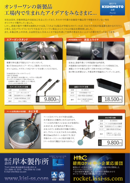 愛知県碧南市にある株式会社岸本製作所が開発したオリジナルブランド 碧南ロケット中小企業応援団。